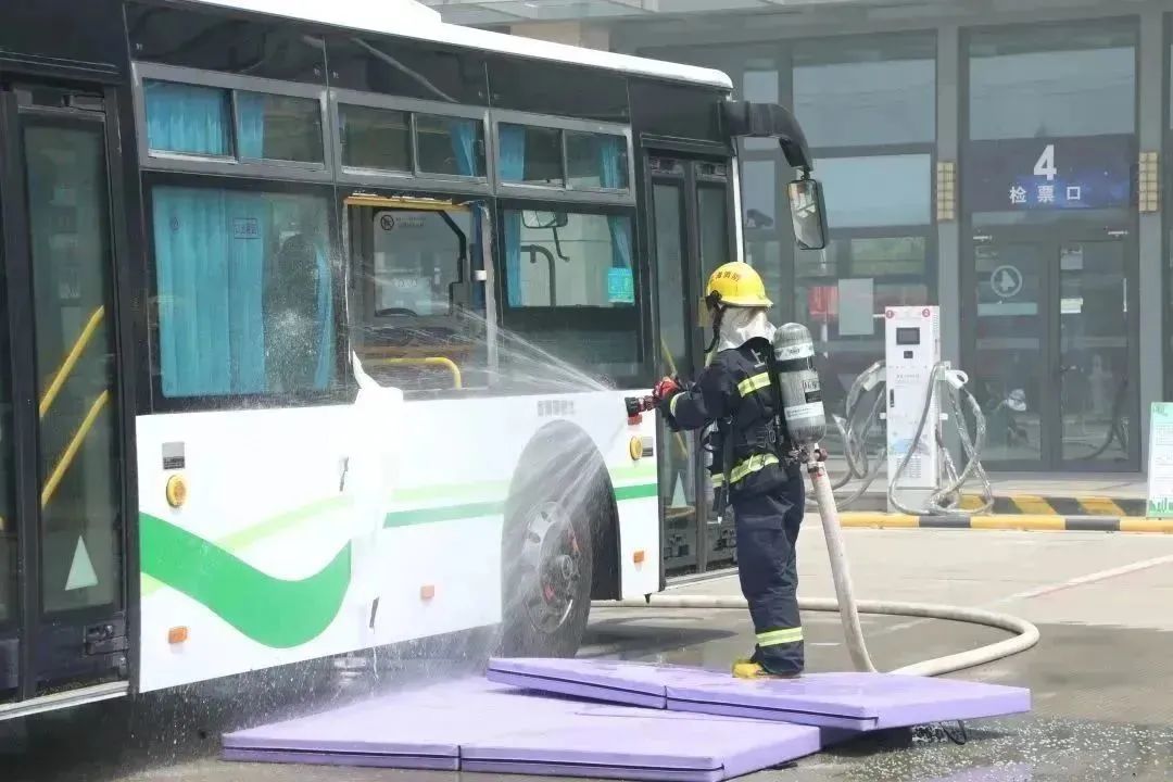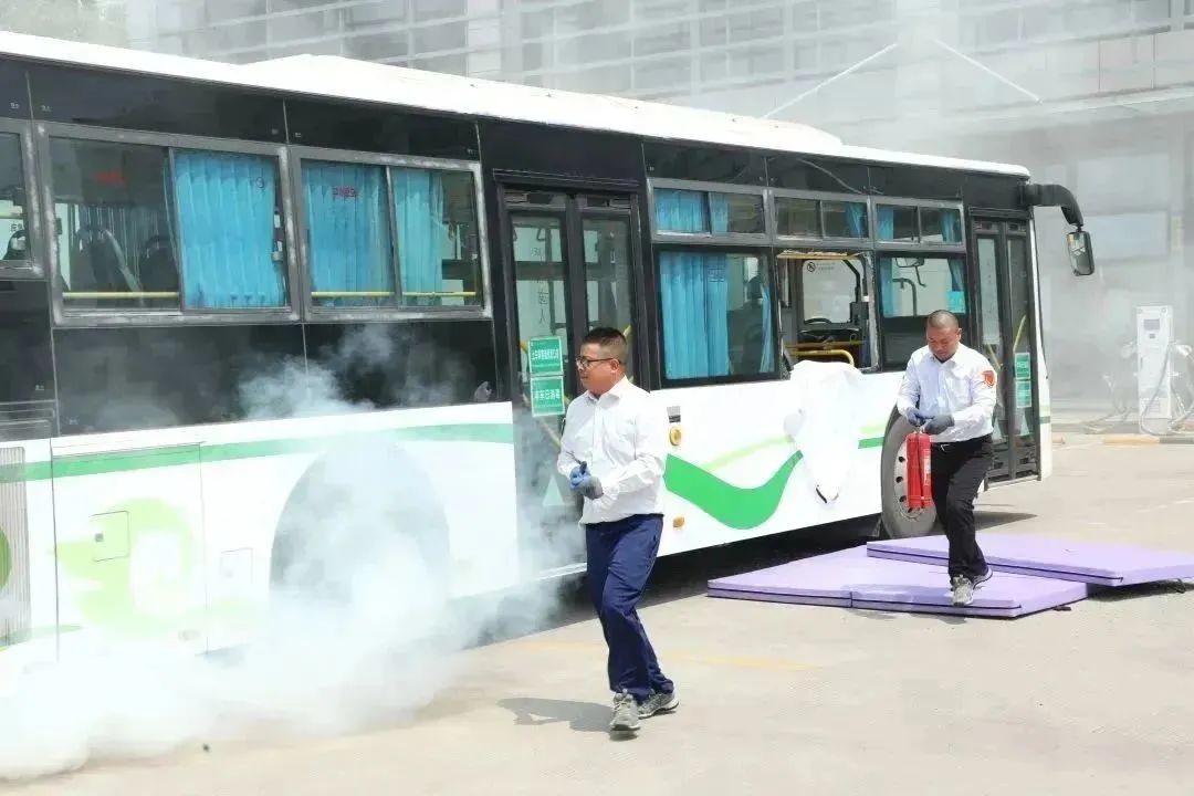本次演练共模拟了4个项目:氢燃料电池公交车氢气泄露应急处置演练、公交车车厢防恐反恐演练、新能源公交车遇下立交道路积水处置演练和公交车突发火灾处置流程演练。演练工作组织到位、保障有力,提高了一线人员的应急处置能力,达到了实战演练的效果。