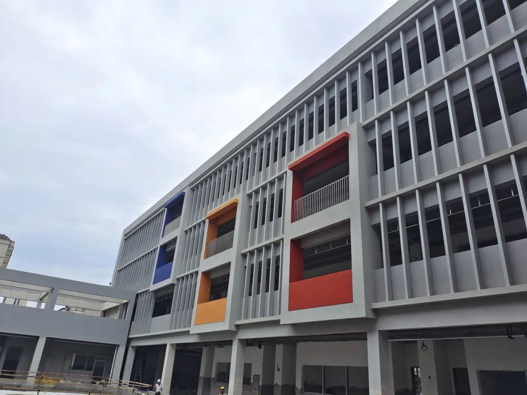 徐泾南部九年一贯制学校位于徐泾镇房产区西区A-3C-3地块,建设内容主要包括新建教学及辅助用房、办公、生活用房、地下车库及绿地、室外设施等工程。建成后,该学校办学规模为36个班,可容纳1520名学生、118名教职工,为进一步完善徐泾南部地区的学校基础配套设施、提高学校办学水平打下了坚实基础。现阶段主体结构全部完工,已全面进入装饰装修阶段。