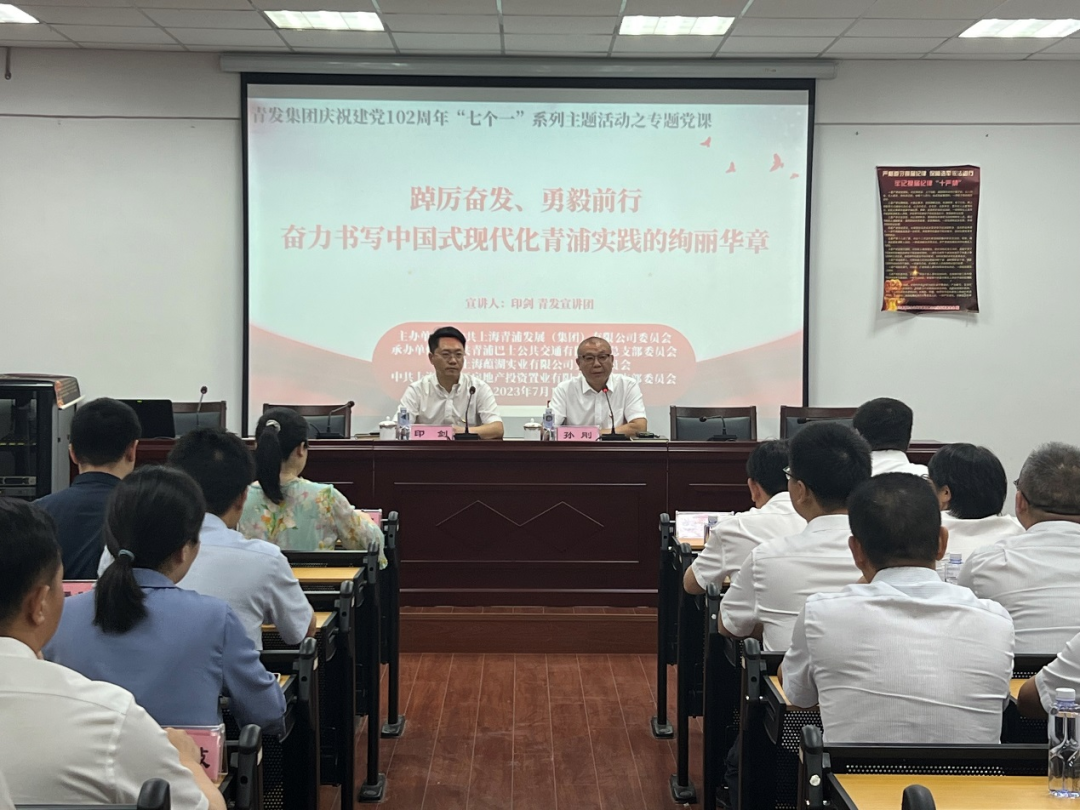 7月18日,集团本部第二党支部和青发城建党支部开展《踔厉奋发、勇毅前行,奋力书写中国式现代化青浦实践的绚丽华章》“七一”专题党课。