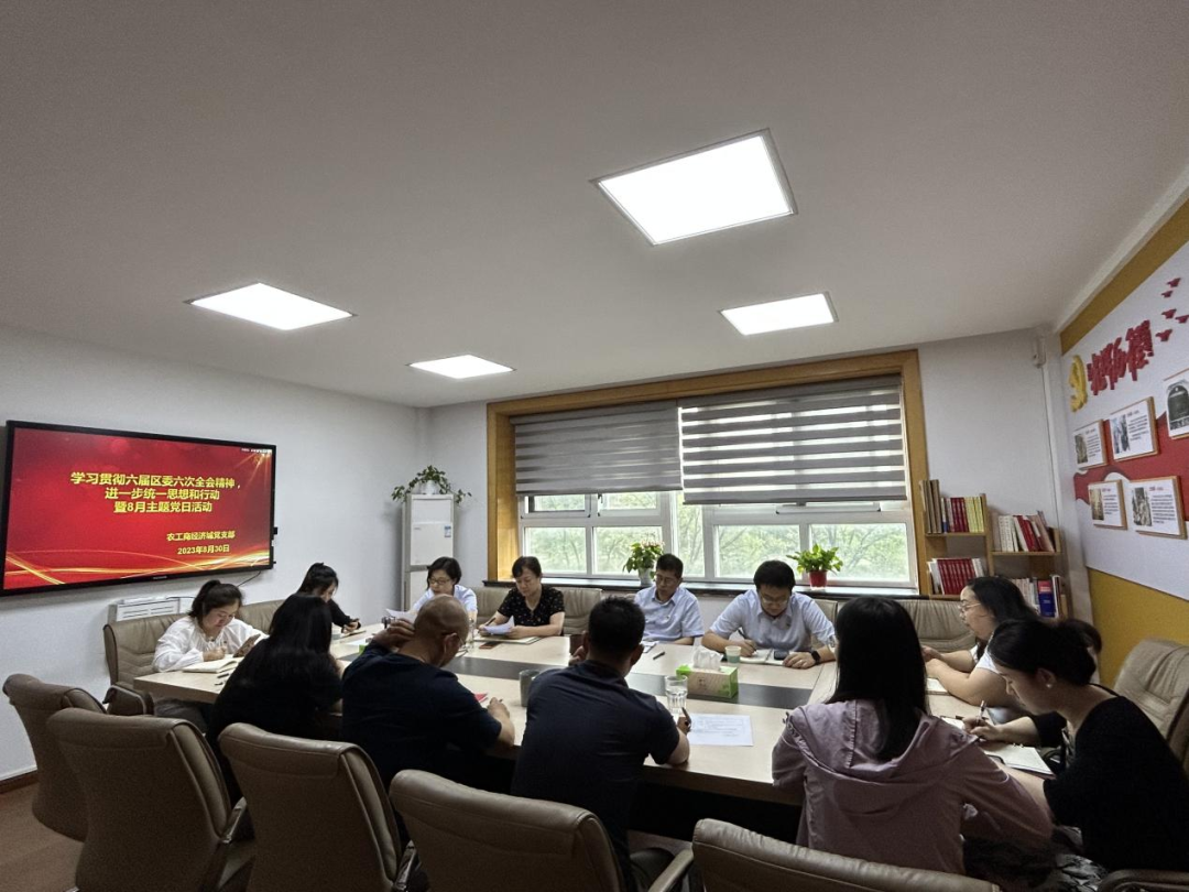 8月30日下午,农工商经济城党支部开展“贯彻六届区委六次全会精神,进一步统一思想和行动” 8月主题党日活动。