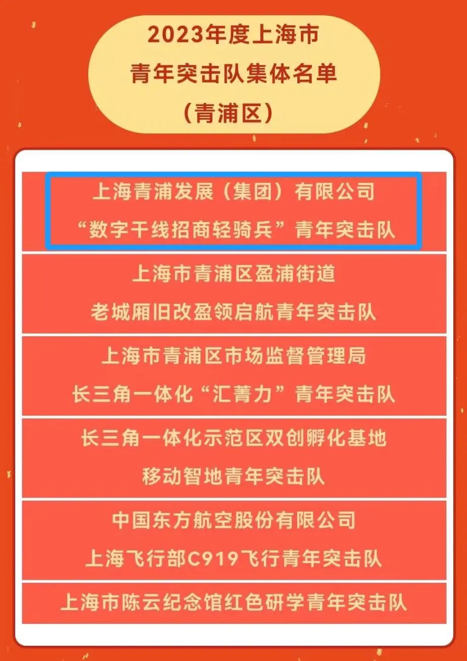 近日,团市委正式发布了《关于通报表扬2023年度上海市青年突击队相关集体的通知》和《关于通报表扬2023年度上海市青年安全生产岗相关集体的通知》,经基层推荐、互学互访、综合比选、逐级复核、严格审查、社会公示等环节,青浦26支青年队伍与集体脱颖而出,其中,上海青浦发展(集团)有限公司“数字干线招商轻骑兵”青年突击队荣获市级通报表扬。