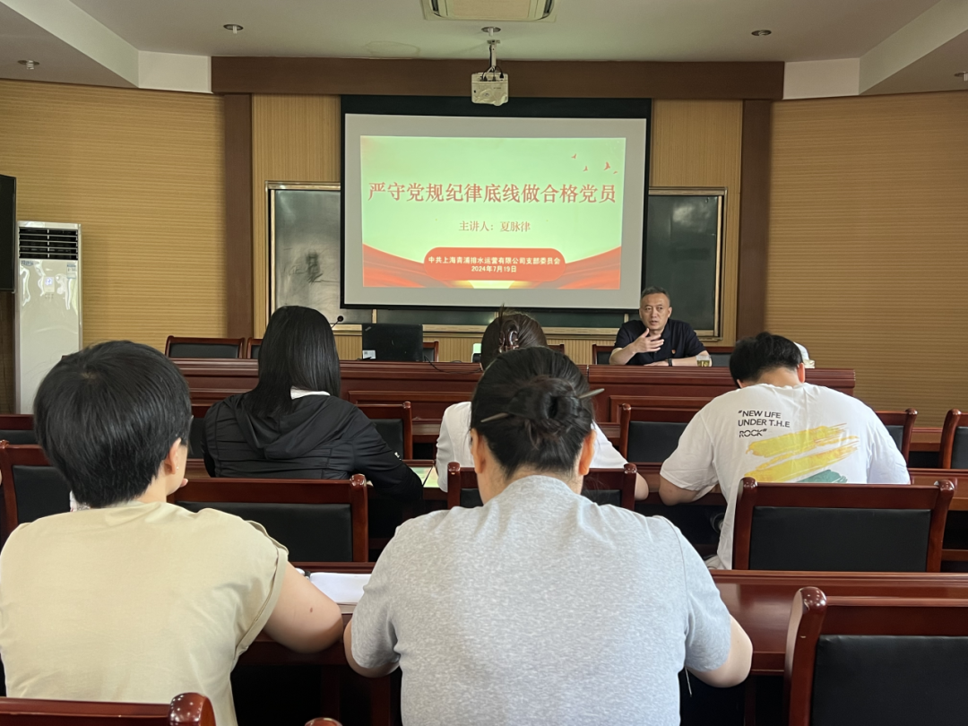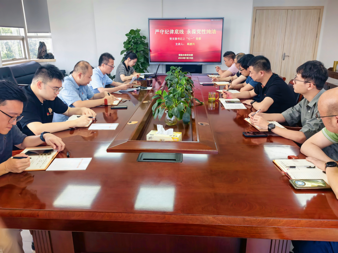 7月19日,青发水务党支部开展“严守纪律底线 永葆党性纯洁”支部书记上“七一”党课。