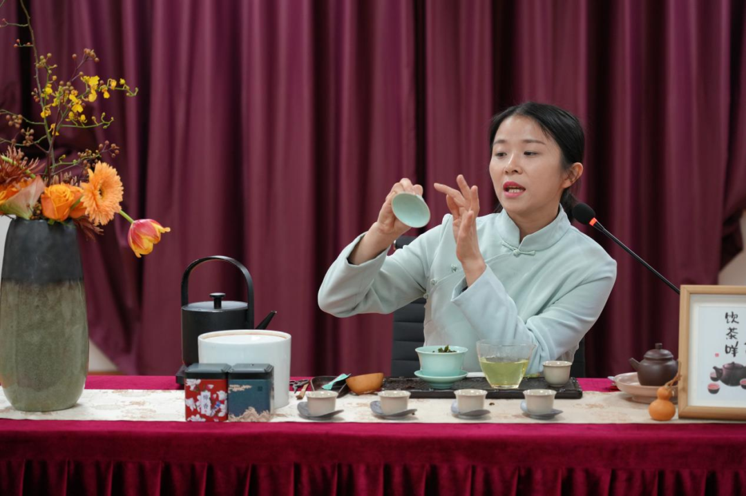 活动伊始,资深茶艺师凭借其深厚的知识储备和生动的讲解,向职工们全面介绍了茶的种类、产地以及泡茶的技巧,使得大家对茶具乃至水温的选择都有了清晰的认识。随后,茶艺师为大家呈现了一场茶艺表演,从温杯、投茶、冲泡到奉茶,每一个环节都洋溢着艺术气息和仪式感,令在场的每个人都目不转睛,仿佛沉浸在一个静谧的茶文化世界之中。