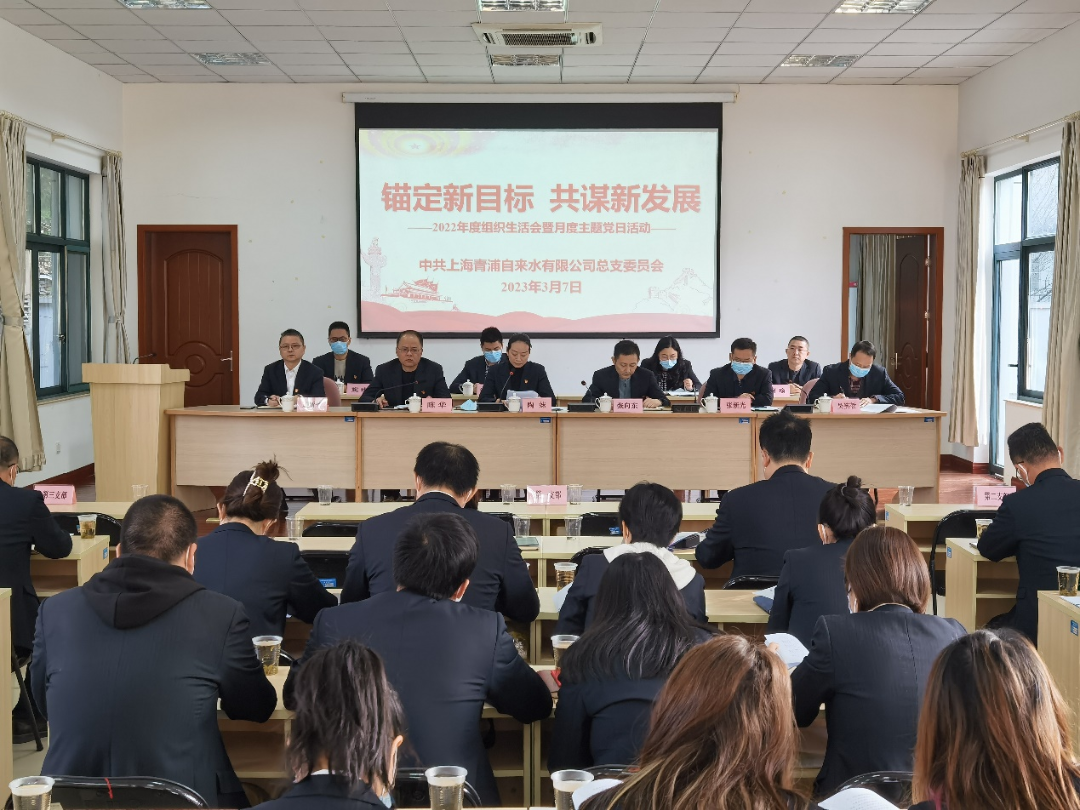 3月7日上午,青浦自来水党总支召开2022年度组织生活会暨“锚定新目标 共谋新发展”主题党日活动。
