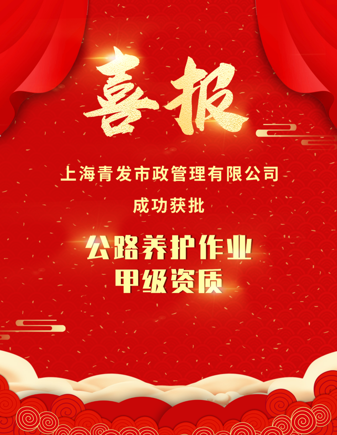 喜报!青发集团下属市政公司取得公路养护甲级资质 2022/12/16