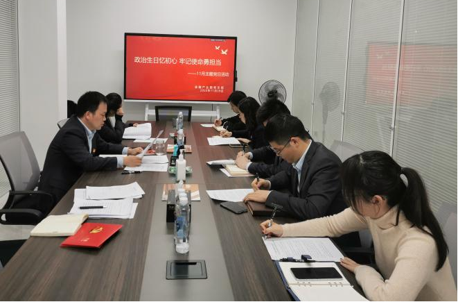 11月29日下午,金融产业园党支部组织开展“政治生日忆初心 牢记使命勇担当”主题党日活动。
