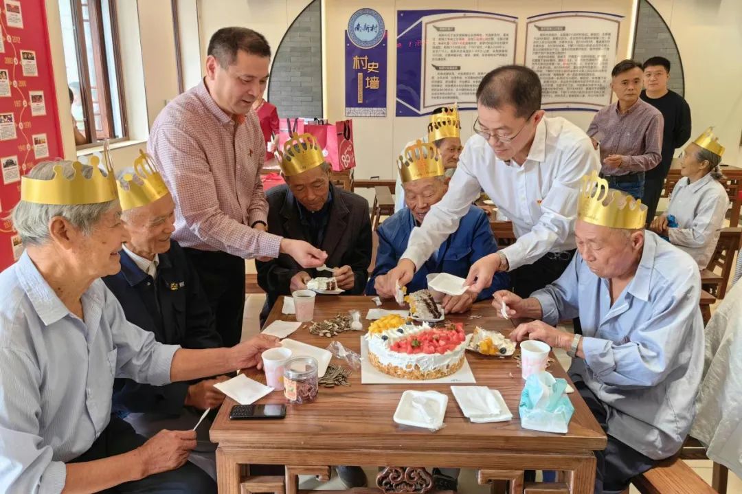 9月29日上午,青发水务公司党支部与南新村党总支在南新村幸福家园共建开展 喜迎“国庆”欢度“重阳”——南新村80周岁及以上老人集体生日会。