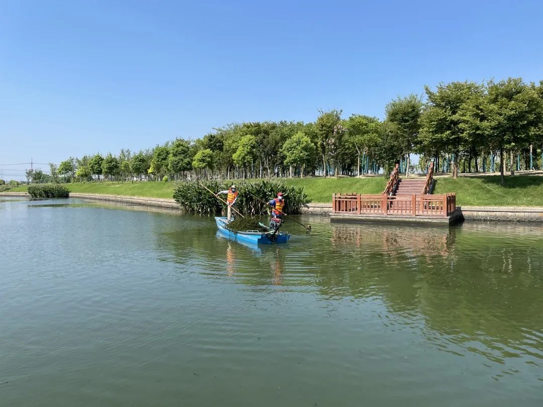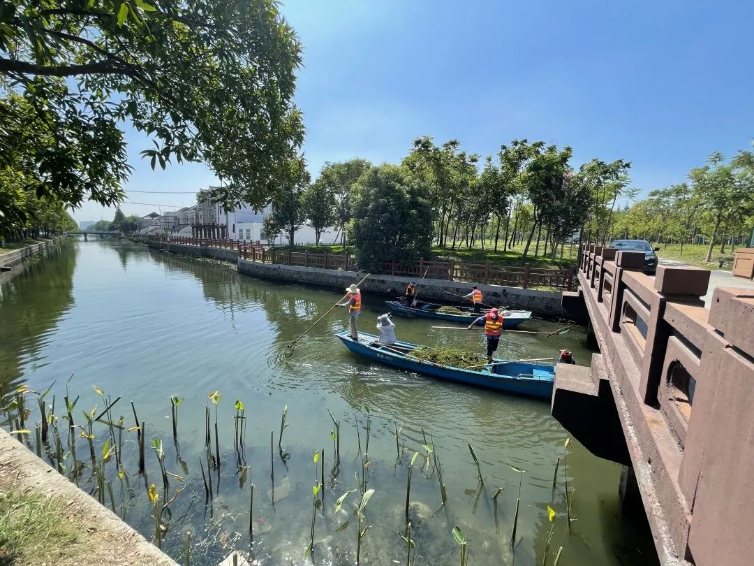 近期,持续的高温天气,使绿萍、水葫芦等水生植物进入生长旺盛期,一片片漂浮在河面上,对河湖水环境造成了不小影响。这几天,青发集团下属青发市政公司守护碧水清波,打造城市靓丽形象,在重固镇的指挥及水务所的指导下,水务养护部的工作人员冒着高温全力开展水草、浮萍打捞长效工作,确保河道清洁畅通。