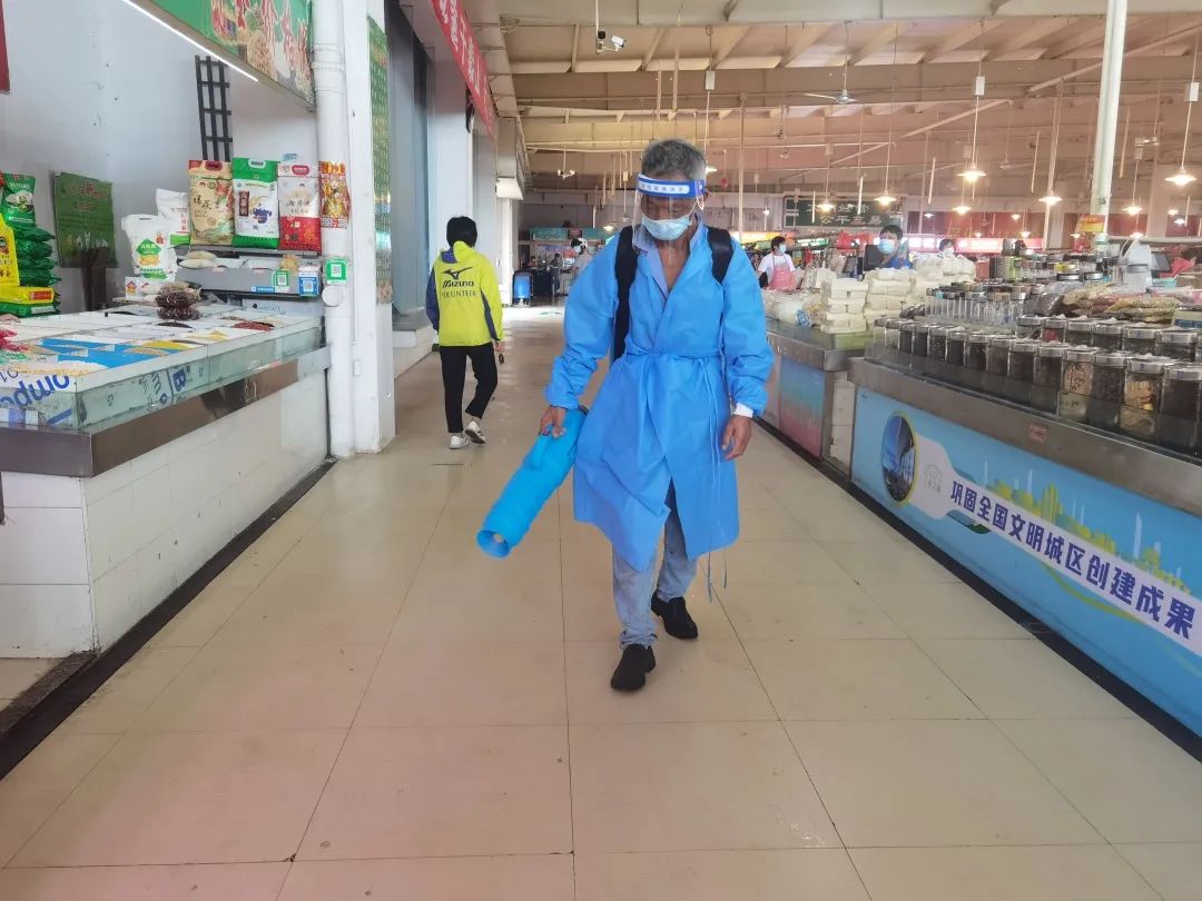 市场内安排有两组清洁队,每组8位清洁员分别在蔬菜区和水产区不间断开展清扫作业,消杀专员也会对菜市场进行全方面消杀,为市民提供安全的购物环境。“市民进入市场需要测量体温,并出示72小时内核酸阴性证明,经营户以及工作人员则需要24小时内核酸阴性证明,场内场外的易接触公共部位都是不定期消杀,市场内的所有人员都必须佩戴口罩。”三元河菜市场负责人周利说。