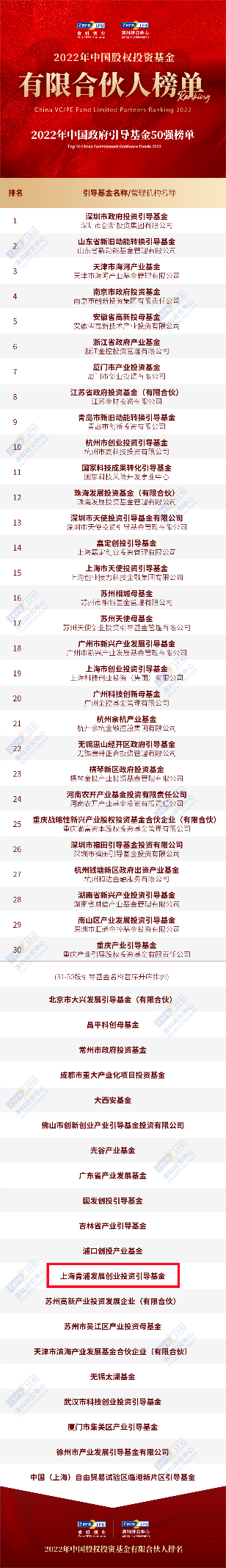 8月4日,清科研究院发布了年度中国股权投资基金有限合伙人榜单。上海青浦发展创业投资引导基金成功进入2022年度中国政府引导基金50强。