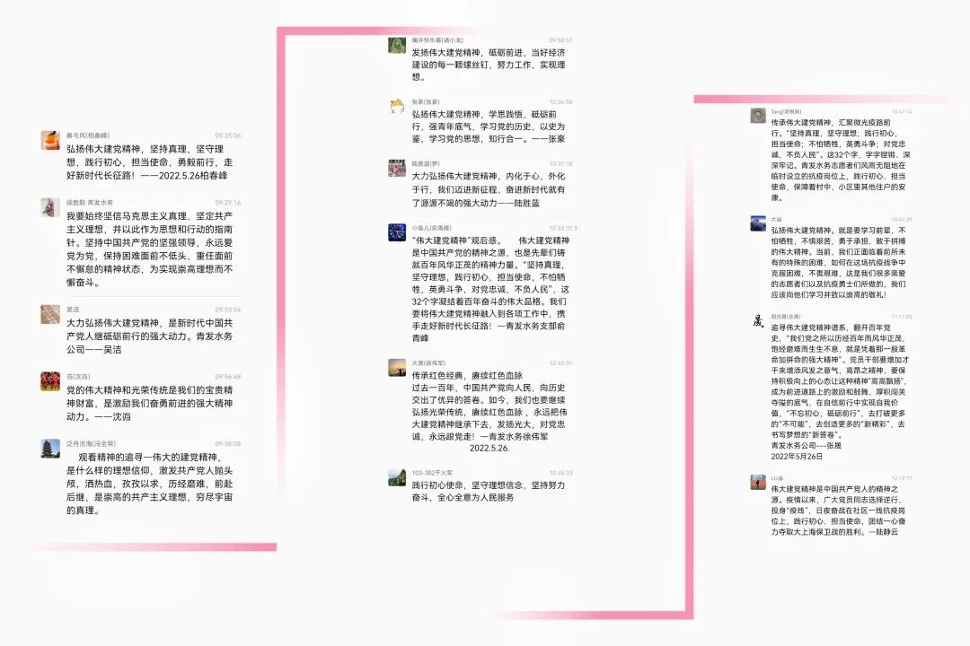 5月26日,上午青发水务党支部通过支部微信群,开展“线上微党课,凝聚战疫心”——5月主题活动,观看微党课《精神的追寻:伟大建党精神》并交流学习心得。