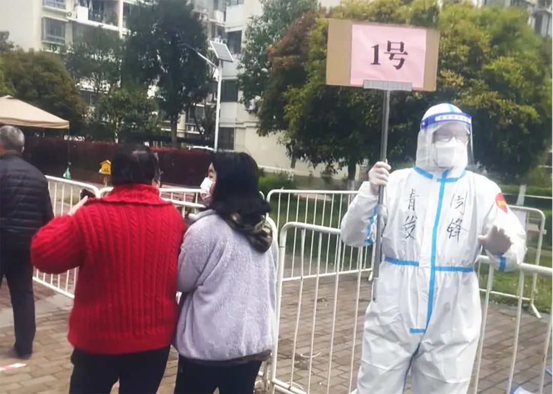 青发市政全体党员、干部挺身而出,给群众作表率,为社区作贡献,切实营造人人参与、人人配合、同心抗疫、众志成城的良好氛围。他们遍布在全区各个社区,有的负责PDA码录入,落实PDA机器的维护与排障;有的疏导维持秩序;有的转身一变成了楼道长,精准排摸未检人员,整队去点位进行核酸检测等。
