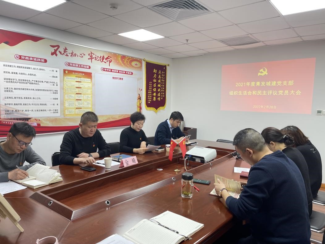 青发城建党支部召开2021年度组织生活会和民主评议党员大会。