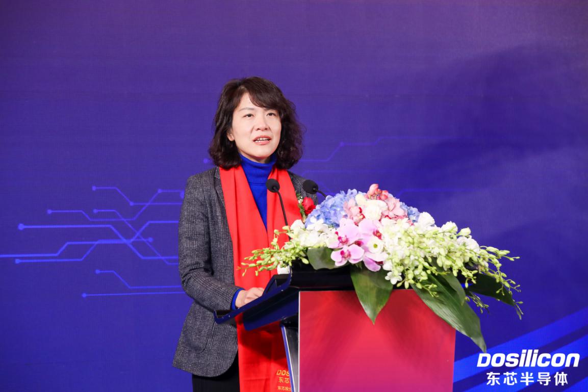 杨小菁在致辞中对东芯半导体成功上市表示祝贺。她表示,青浦当前正聚焦数字经济核心产业及其支撑产业发展,全力打造“长三角数字干线”。作为长“三角数字干线”上一颗闪亮的“今日之星”,希望东芯半导体以上市为新的起点再创佳绩。