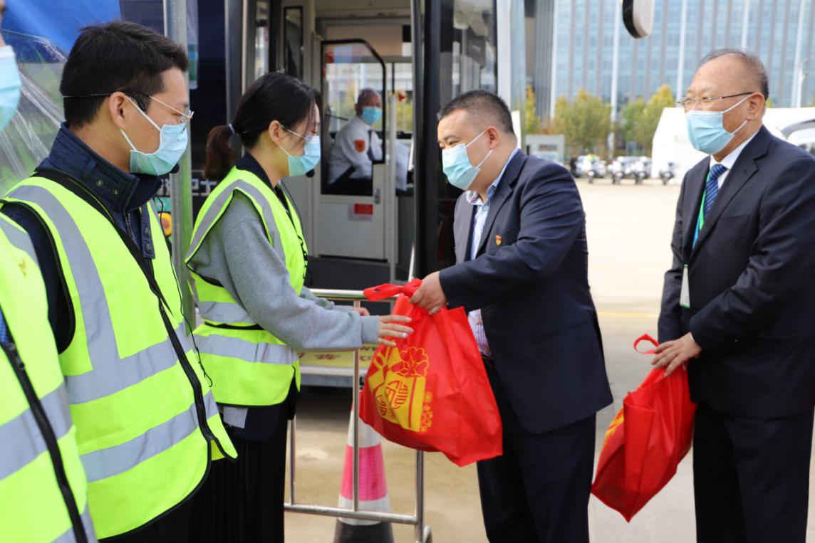 11月7日,青发集团党委委员、副总经理付乐奎带队前往国家会展中心慰问巴士公司进博一线工作人员和志愿者。巴士公司班子成员陪同走访慰问。