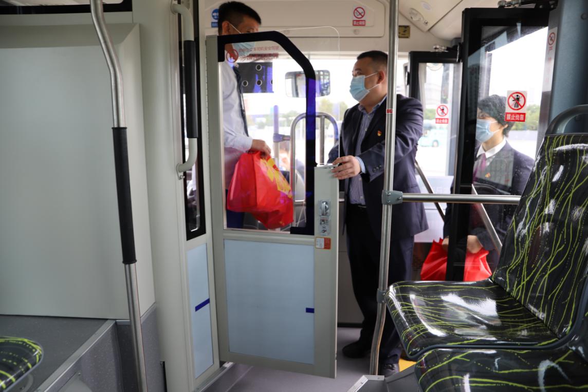 最后,付乐奎向工作人员、志愿者们送上慰问品,对他们长期付出的努力表示感谢。同时,希望巴士公司能继续增强疫情防控意识,加强自身防护,确保第四届进博会地面公交保障工作顺利开展。