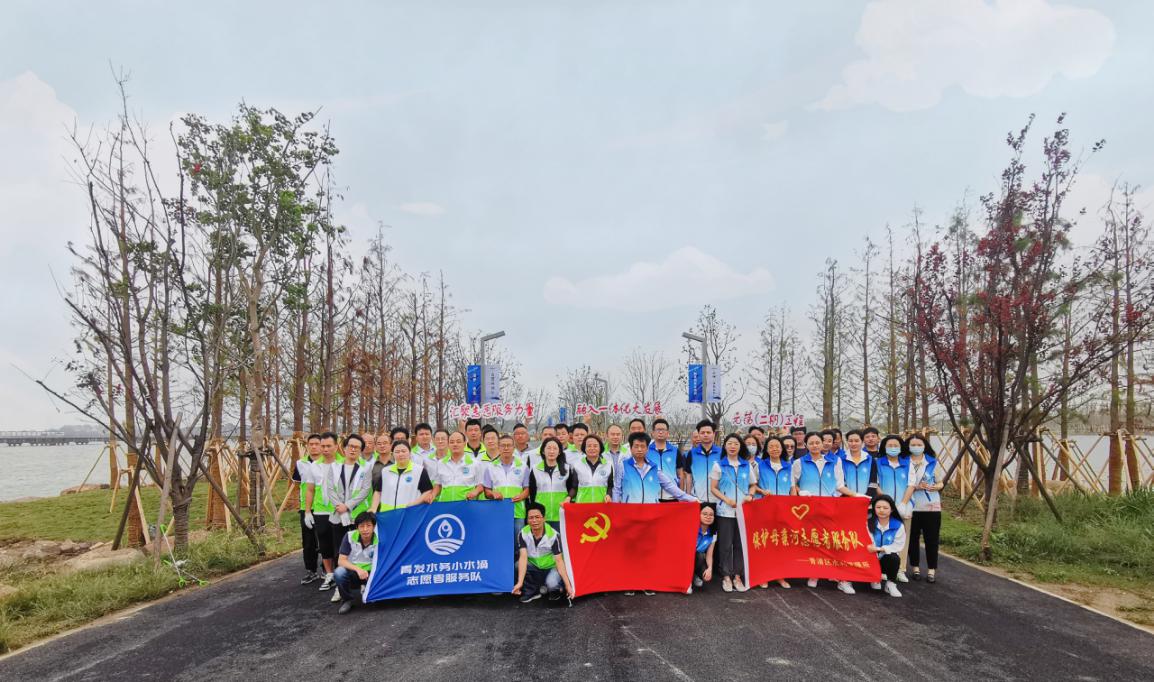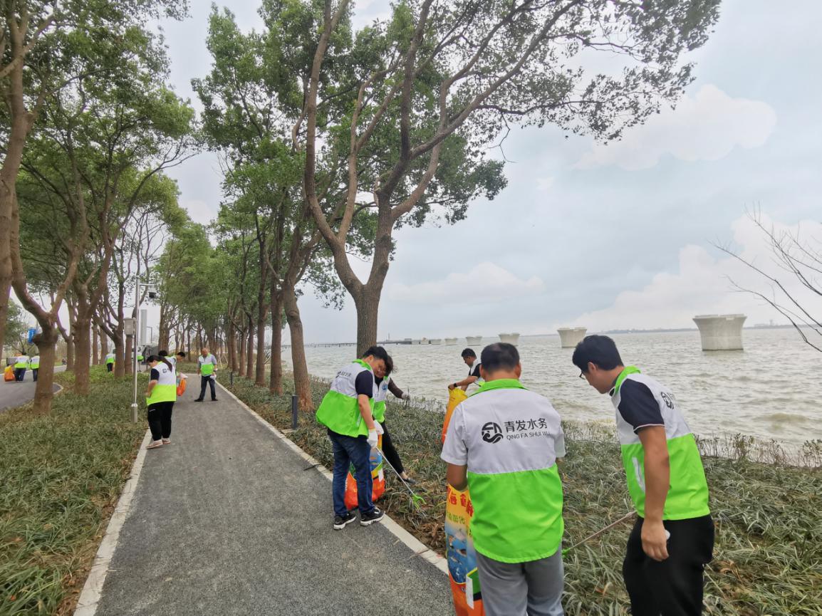 青发水务党支部联合青浦区水利所党支部,来到长三角一体化重点项目——元荡堤防达标和岸线生态修复(二期)工程,开展“汇聚志愿服务力量,融入一体化大发展”公益生态保护活动。