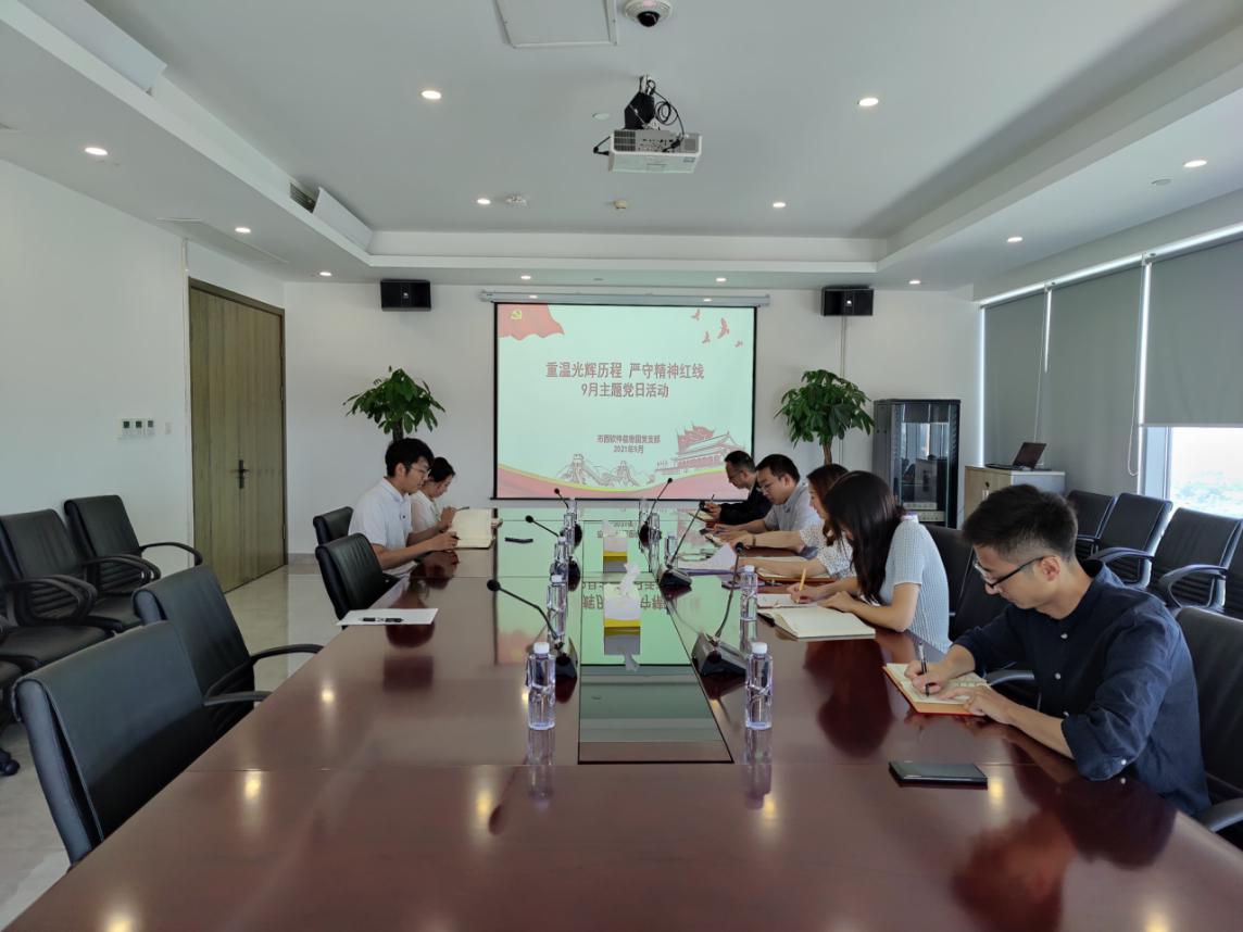 市西软件园党支部召开“重温光辉历程严守精神红线”9月主题党日活动,集中观看《身边的警醒7》。