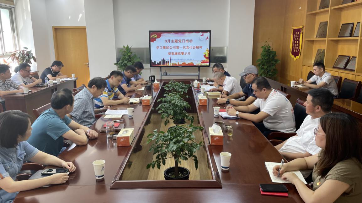 青发市政党支部开展9月主题党日活动。传达学习青发集团第一次党代会精神,集中观看警示教育片。