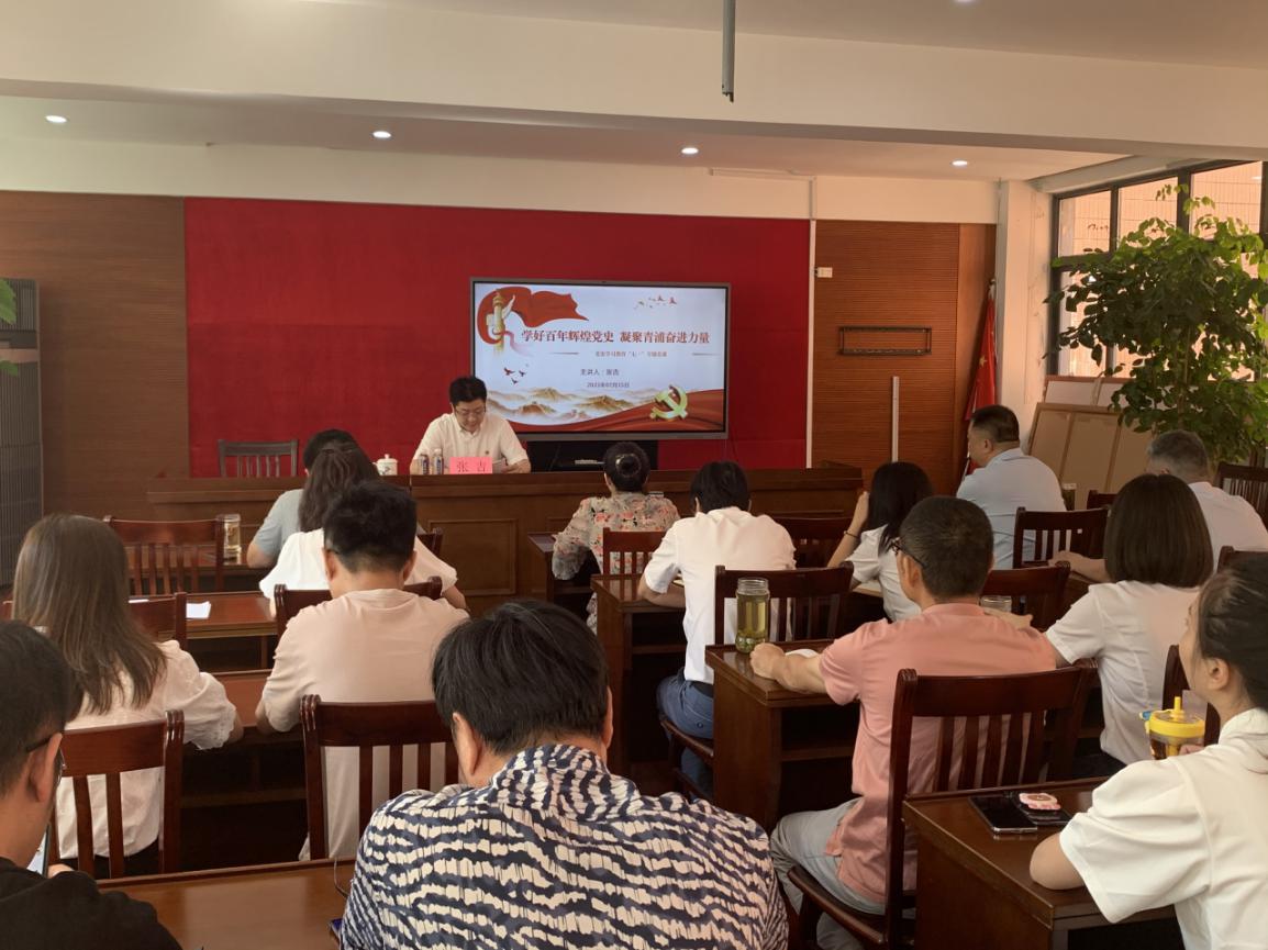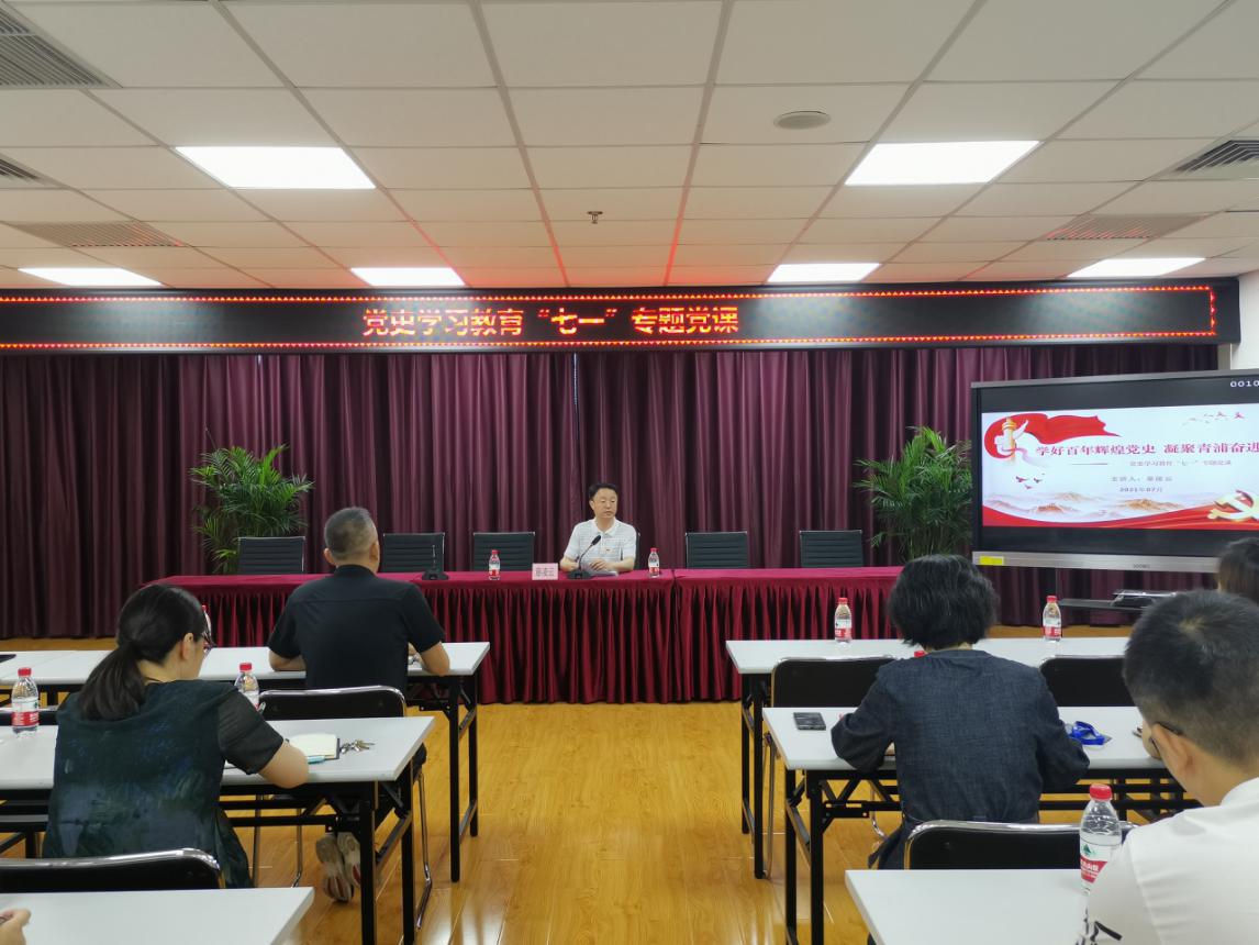 青发集团党委副书记张吉为房产置业公司党支部和蕴湖公司党支部上“七一”专题党课。