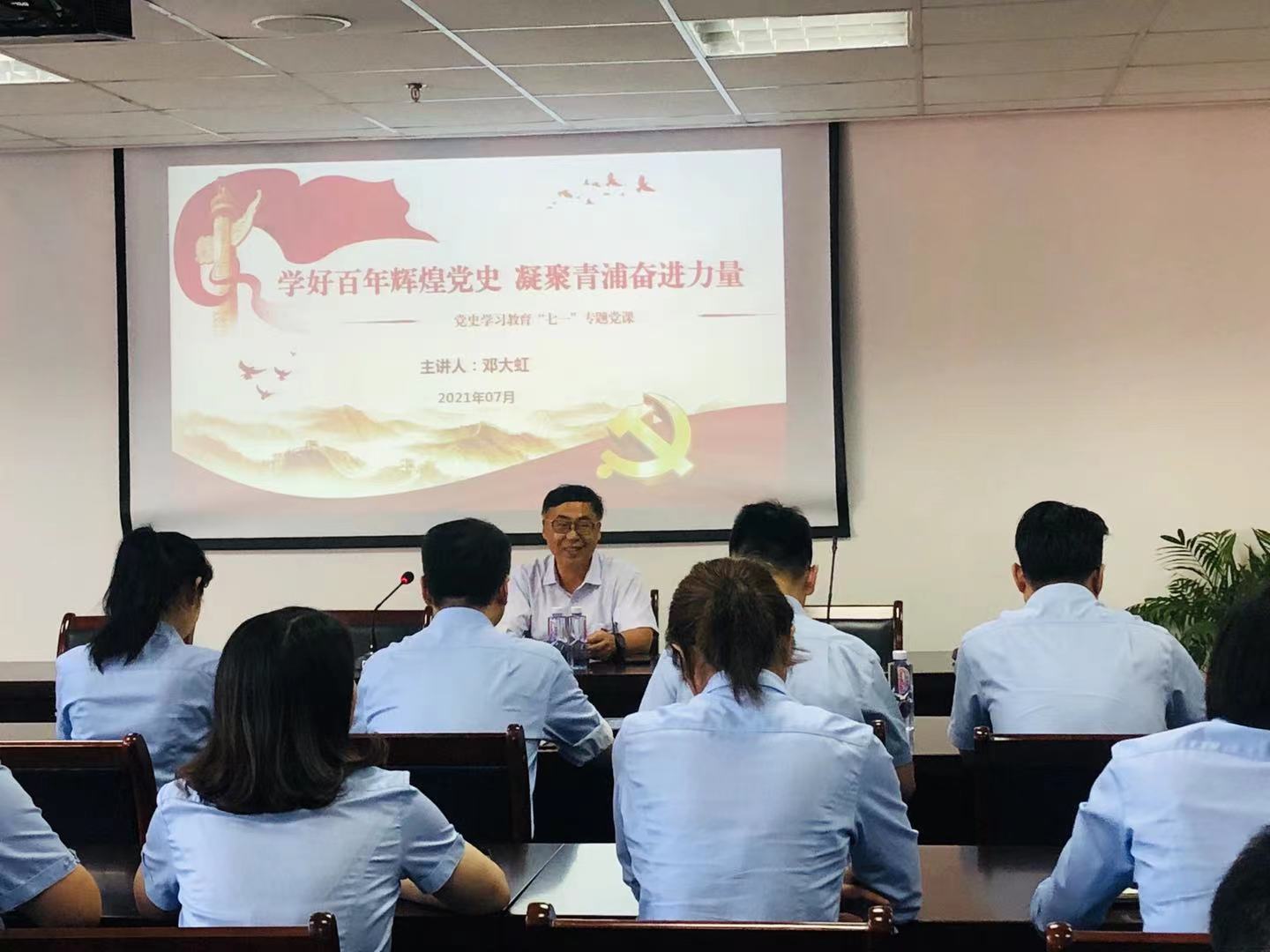 青发集团党委委员、副总经理邓大虹为天佳公司党支部和金融产业园党支部上“七一”专题党课。