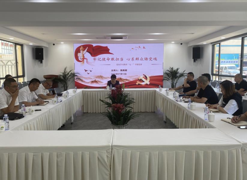 青发集团党委委员、纪委书记施英君为市场开发公司党支部和场站公司党支部上“七一”专题党课。