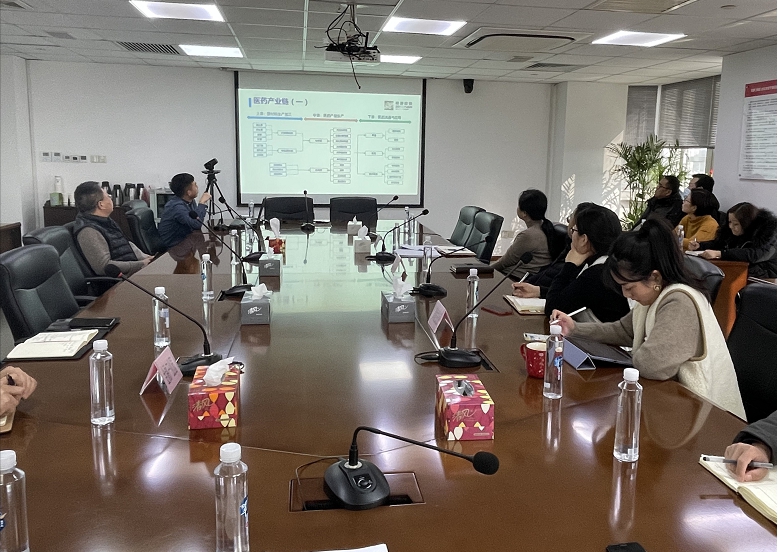 课上,青发投资介绍了医药产业链概况、新药从研发到上市的流程以及细分领域CRO产业的相关情况。随后,农工商经济城介绍了青浦区医药产业招商优惠政策。