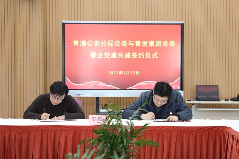 会上,青浦公安分局党委副书记、政委杨俊和青发集团党委副书记、总经理雷鹏分别介绍了青浦公安分局基本情况和青发集团的发展情况。随后,青浦公安分局党委副书记、副局长周萍和青发集团党委副书记张吉代表双方共同签署了警企党建共建框架协议。