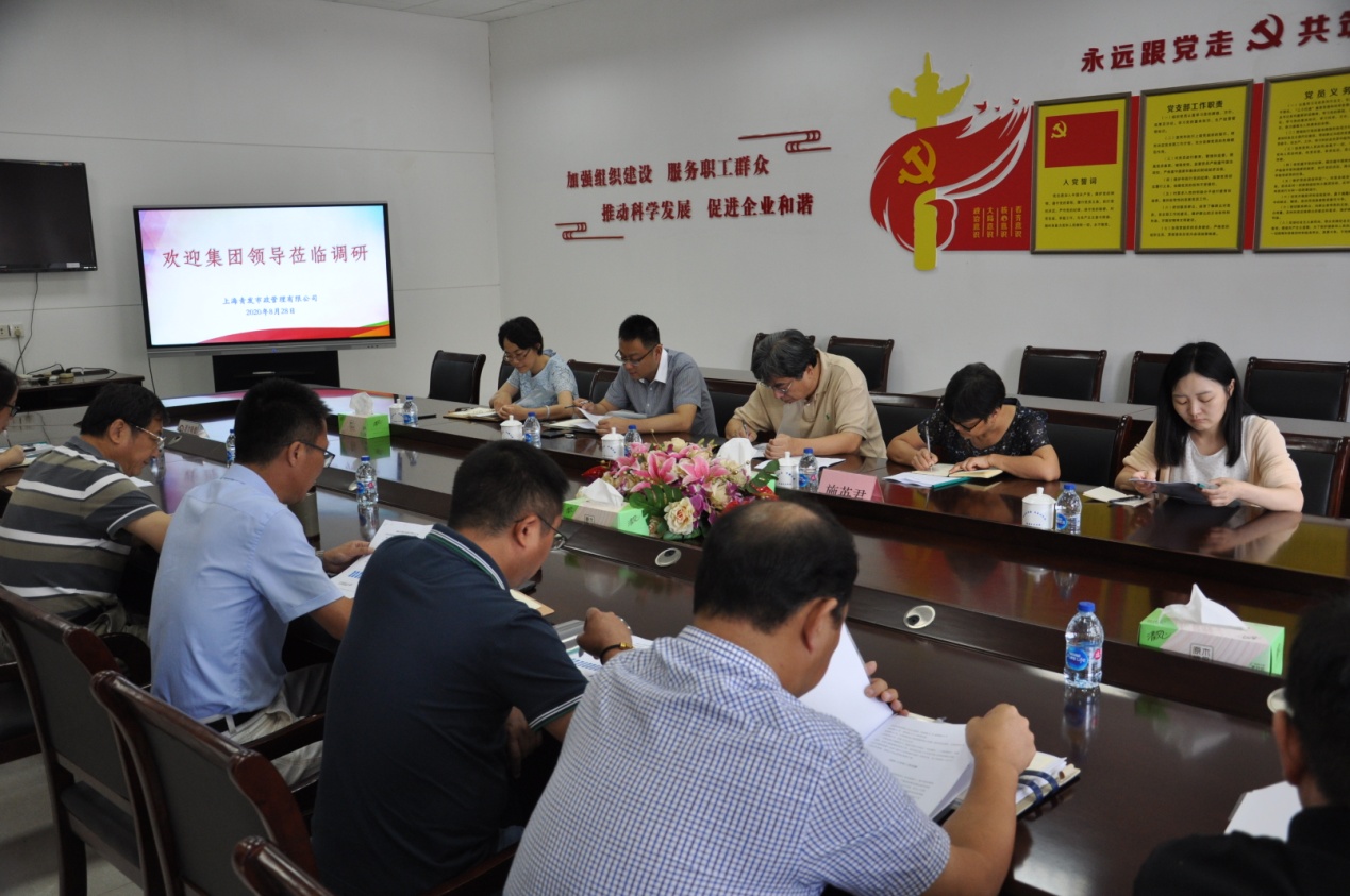 8月28日,青发集团监事会主席徐红岗,党委委员、纪委书记施英君赴青发市政公司开展调研,集团党群人事部、法务稽核部、行风监督室出席了调研会。