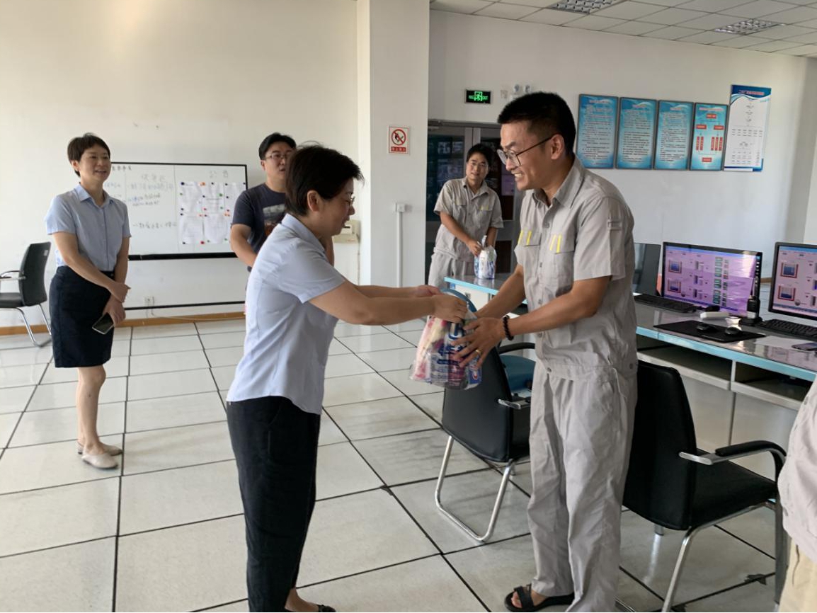 集团党政班子领导深入一线,向奋战在岗位上的职工表示敬意和慰问,并送上清凉消暑用品。