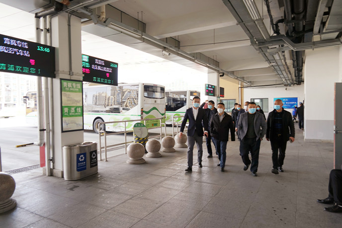 3月16日下午,青发集团总经理雷鹏、副总经理付乐奎和相关部门先后赴漕盈路站、青浦盈港路综合交通枢纽、朱家角汽车站以及徐泾东临时公交枢纽站开展调研,场站公司班子成员陪同。