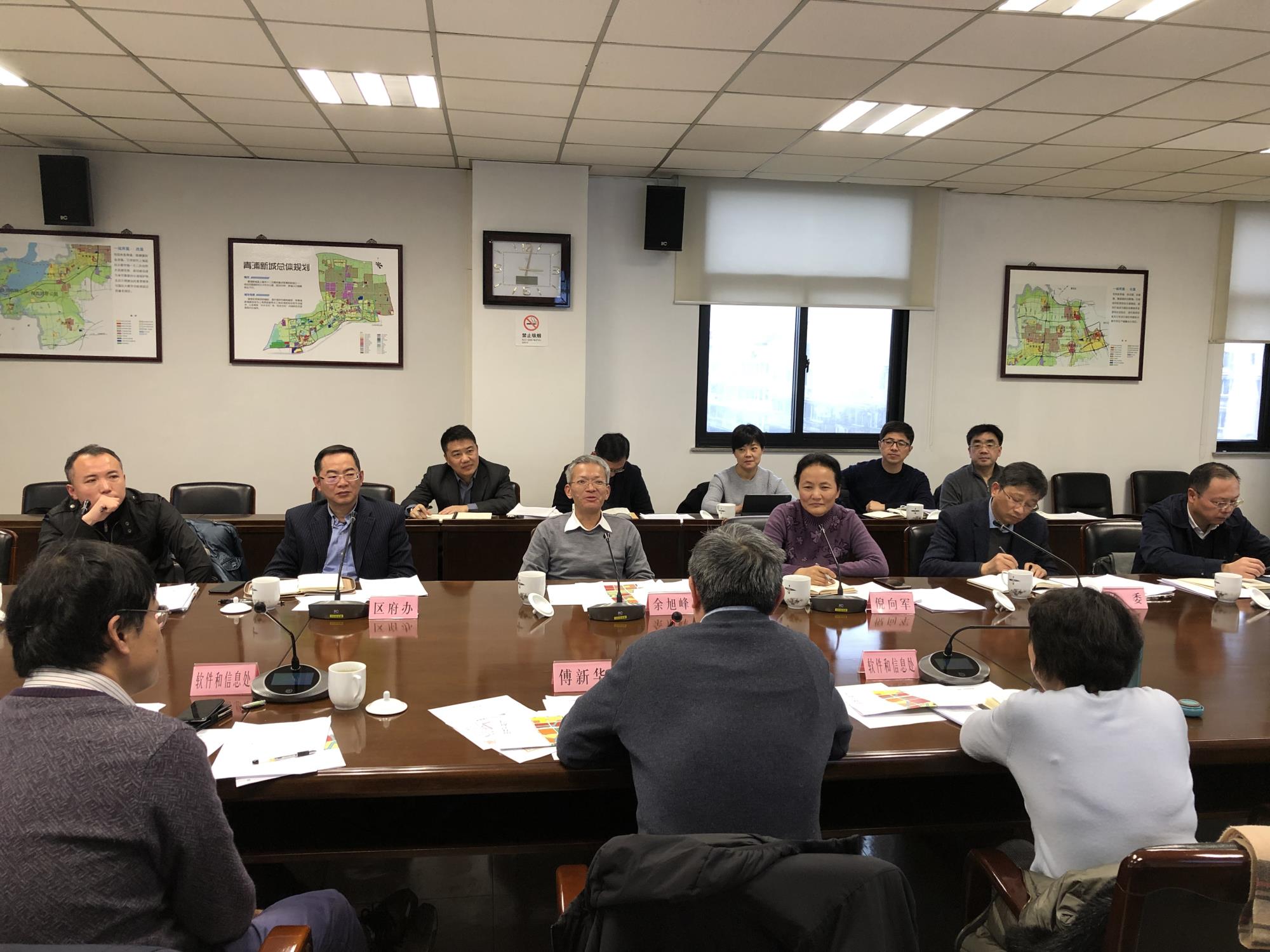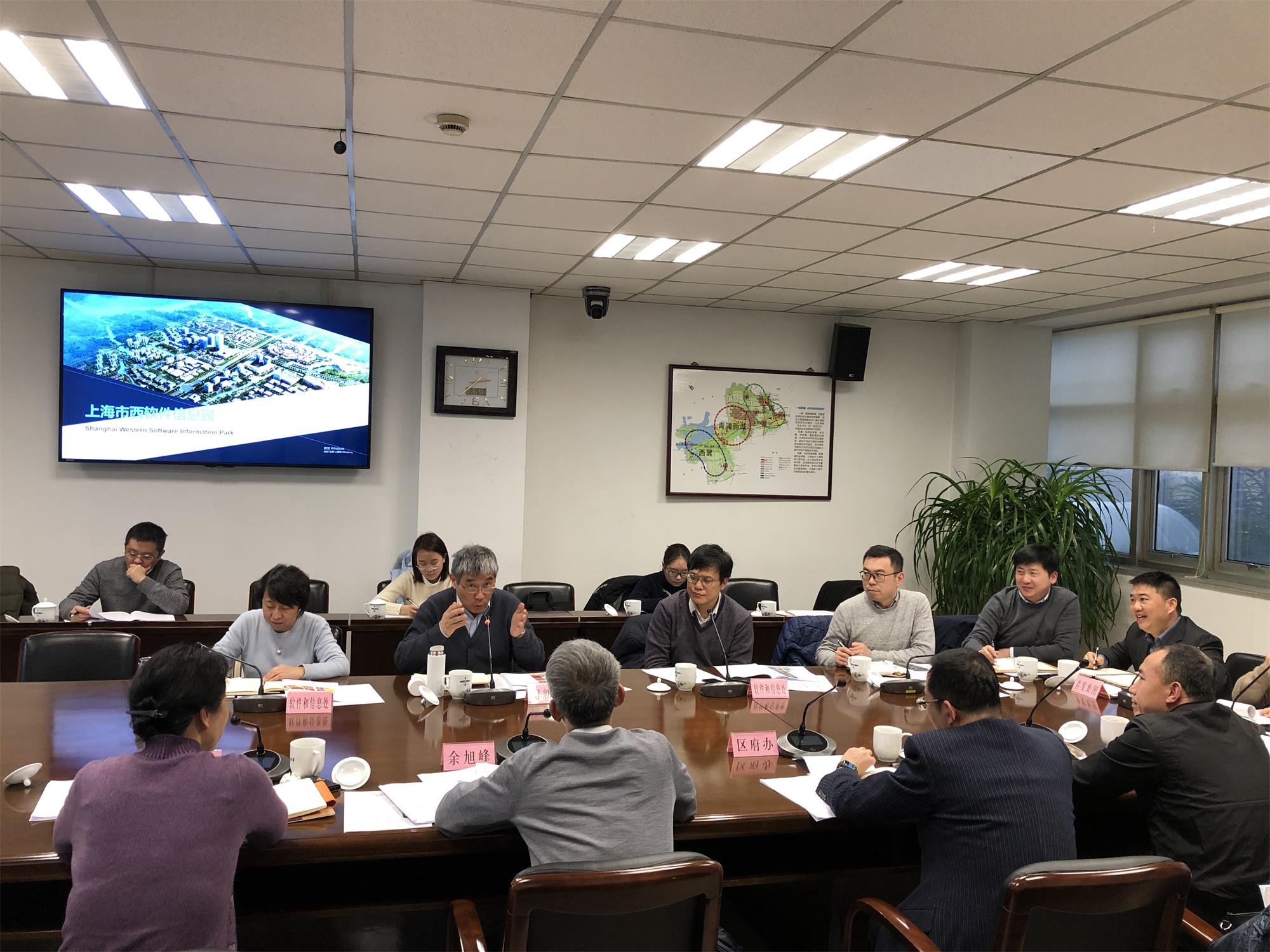 2019年2月15日,青浦区区长余旭峰、副区长倪向军会见上海市经信委副主任傅新华一行,双方就市西软件园工作推进展开交流。市经信委软件处、青浦区区府办、发改委、经委、科委、规土局、赵巷镇和青发集团等部门负责人参加会议。