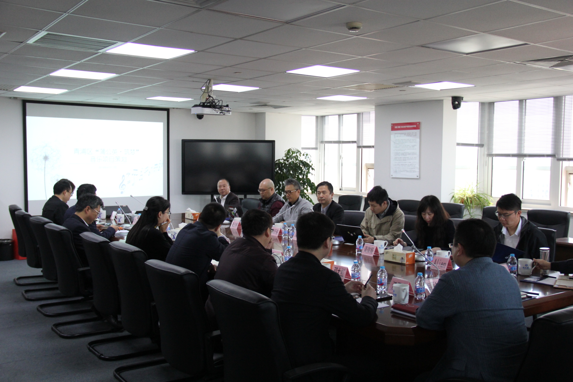 2018年4月17日上午,青浦区副区长金俊峰、经委主任朱要武、发改委副主任叶慧、文广局副局长陈涛、青发集团总经理雷鹏、青发集团副总经理邓大虹等一行会见了著名音乐人黄舒骏、北大青鸟音乐文化产业集团CEO马群山、高地文化CEO梁正晖等一行,会议就“蒲公英”音乐种子计划(以下简称“蒲公英计划”)展开研讨。