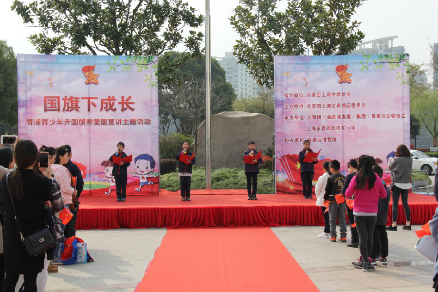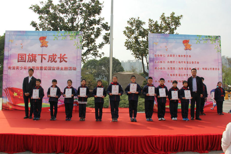 3月25日上午,由共青团上海市委员会、共青团上海市青浦区委员会主办,青发集团团委、青浦区崧文小学承办的“国旗下成长”——上海青少年升国旗暨爱国宣讲主题活动在青浦区博物馆举行。青浦团区委兼职书记白敬轩、青浦团区委办公室主任等领导莅临现场观摩指导,青发集团党群部部长、青发集团办公室主任、青发集团团委班子和青发集团职工代表出席活动,团区委兼职书记白敬轩和党群部部长为小朋友们颁发纪念证书。