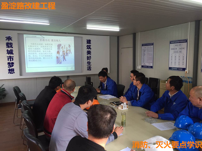 此次活动以盈淀路改建工程项目为演练点,针对建筑工地项目的特征,向员工普及了“电气使用安全、火灾基本常识、初起火灾扑救、常见的火灾隐患排查、逃生要点、人员抢救护理”等消防知识并开展“盈淀路项目消防、人员抢救”应急演练。